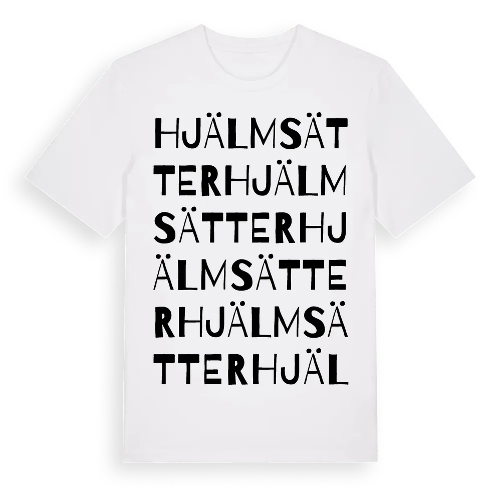 Hjälmsätter ordlek t-shirt är inspirerad av Hjälmsätter i Örebro län, Sverige. Tröjan är designad för dig som har en speciell koppling till platsen – oavsett om du bor här, har rötterna här eller bara älskar Hjälmsätter.