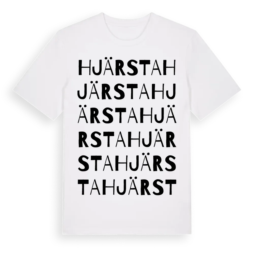 Hjärsta ordlek t-shirt är inspirerad av Hjärsta i Örebro län, Sverige. Tröjan är designad för dig som har en speciell koppling till platsen – oavsett om du bor här, har rötterna här eller bara älskar Hjärsta.