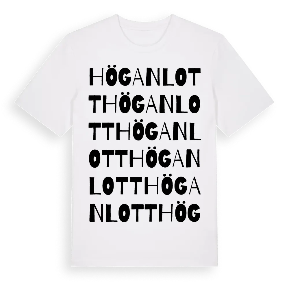 Höganlott ordlek t-shirt är inspirerad av Höganlott i Örebro län, Sverige. Tröjan är designad för dig som har en speciell koppling till platsen – oavsett om du bor här, har rötterna här eller bara älskar Höganlott.