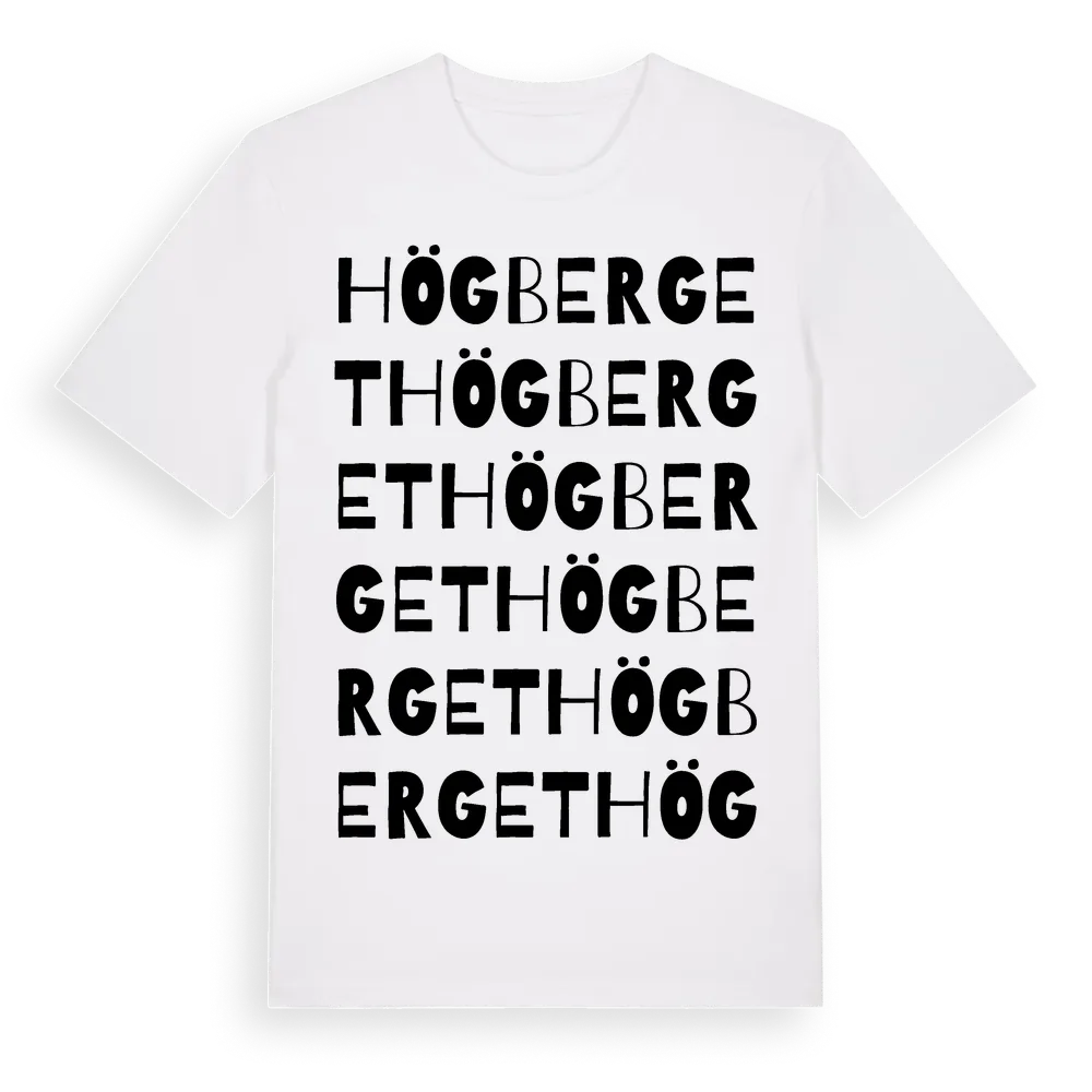 Högberget ordlek t-shirt är inspirerad av Högberget i Örebro län, Sverige. Tröjan är designad för dig som har en speciell koppling till platsen – oavsett om du bor här, har rötterna här eller bara älskar Högberget.