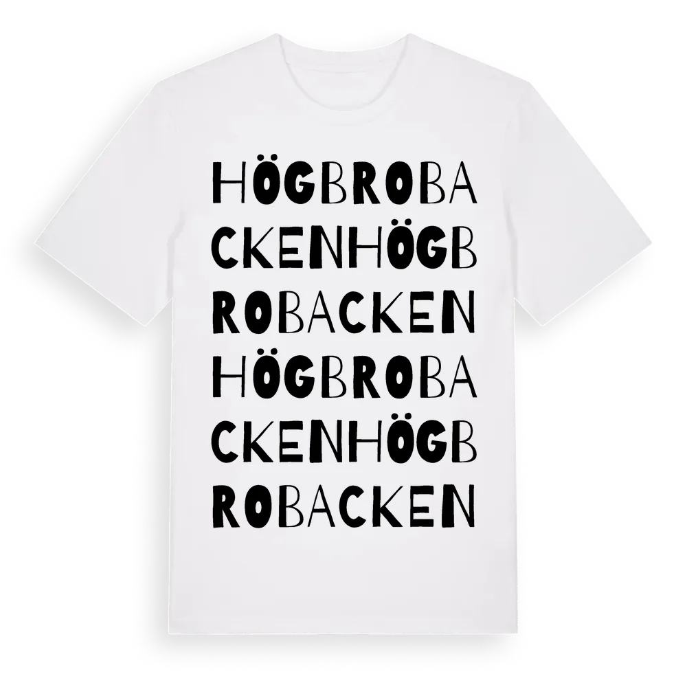 Högbrobacken ordlek t-shirt är inspirerad av Högbrobacken i Örebro län, Sverige. Tröjan är designad för dig som har en speciell koppling till platsen – oavsett om du bor här, har rötterna här eller bara älskar Högbrobacken.