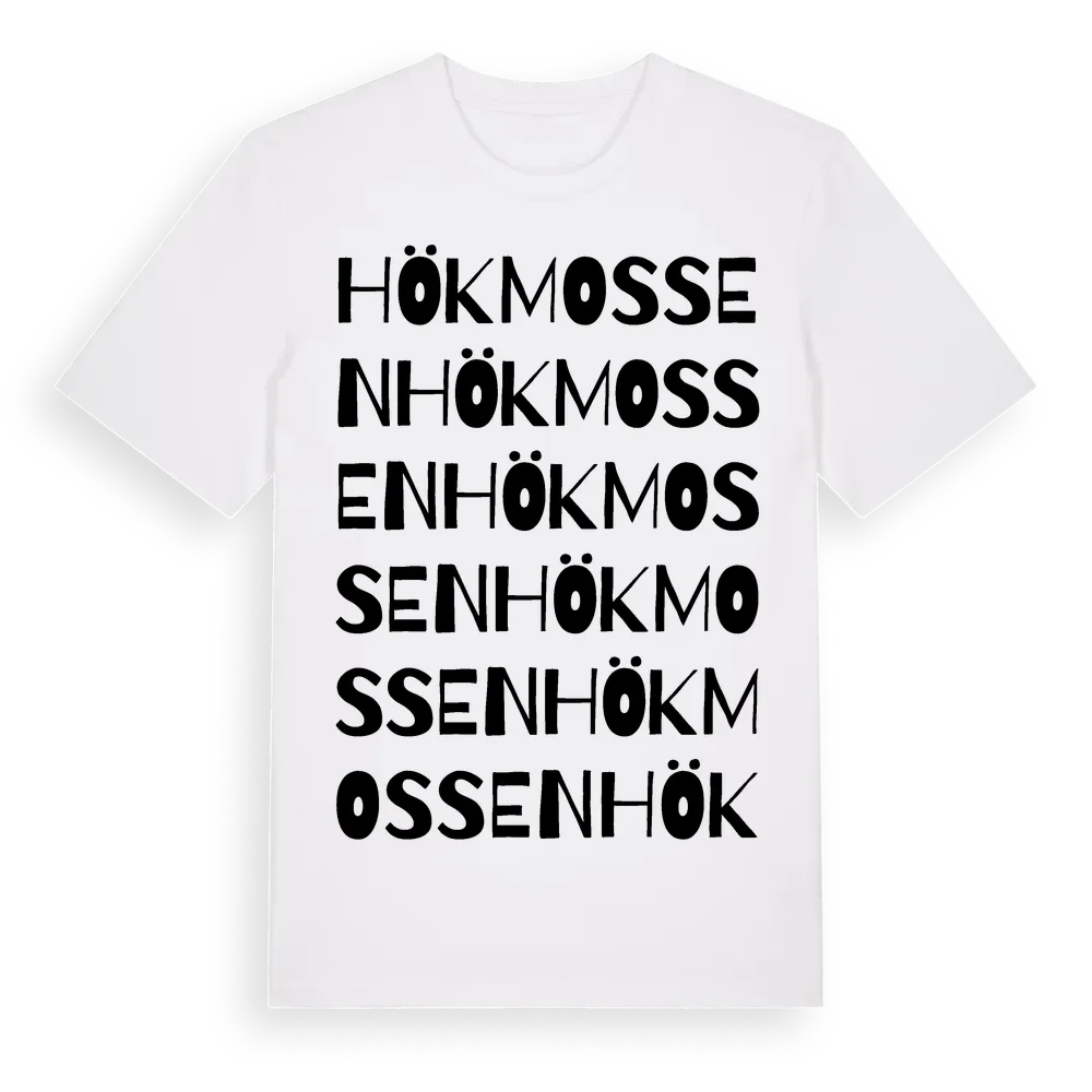 Hökmossen ordlek t-shirt är inspirerad av Hökmossen i Örebro län, Sverige. Tröjan är designad för dig som har en speciell koppling till platsen – oavsett om du bor här, har rötterna här eller bara älskar Hökmossen.
