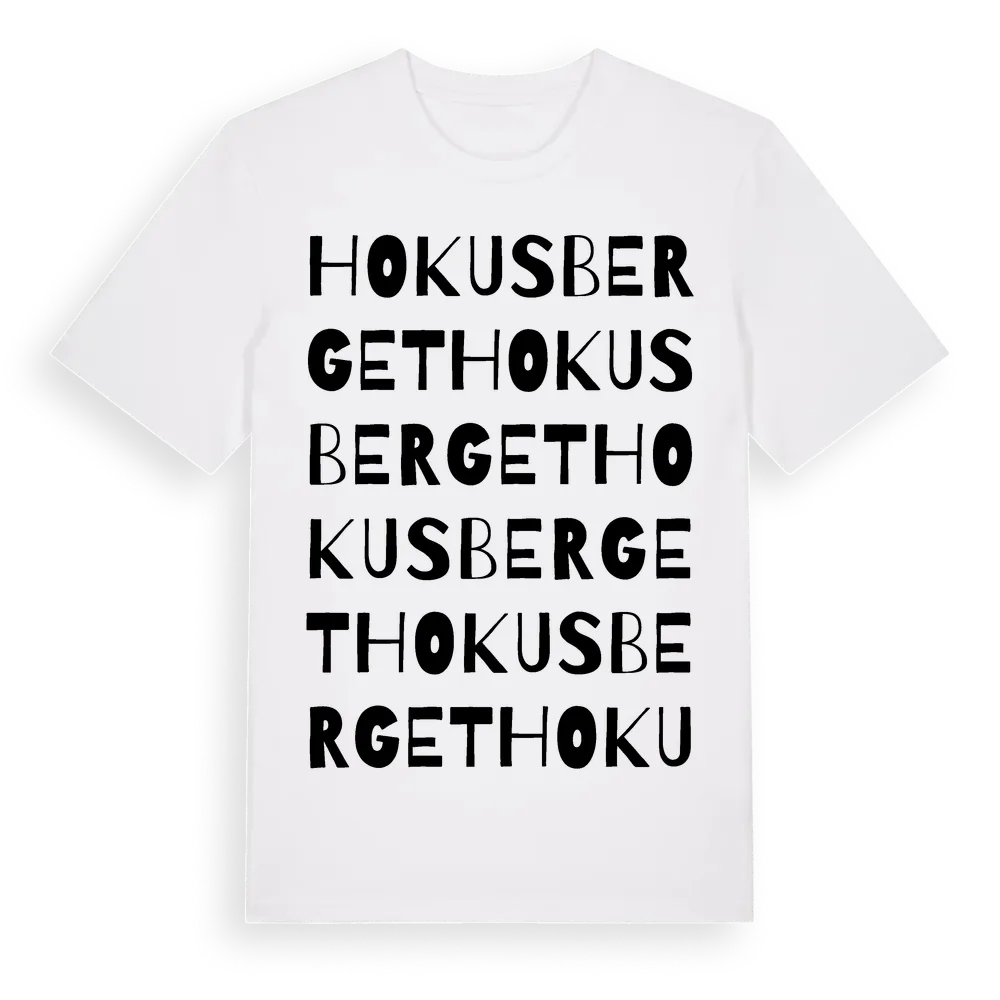 Hokusberget ordlek t-shirt är inspirerad av Hokusberget i Örebro län, Sverige. Tröjan är designad för dig som har en speciell koppling till platsen – oavsett om du bor här, har rötterna här eller bara älskar Hokusberget.