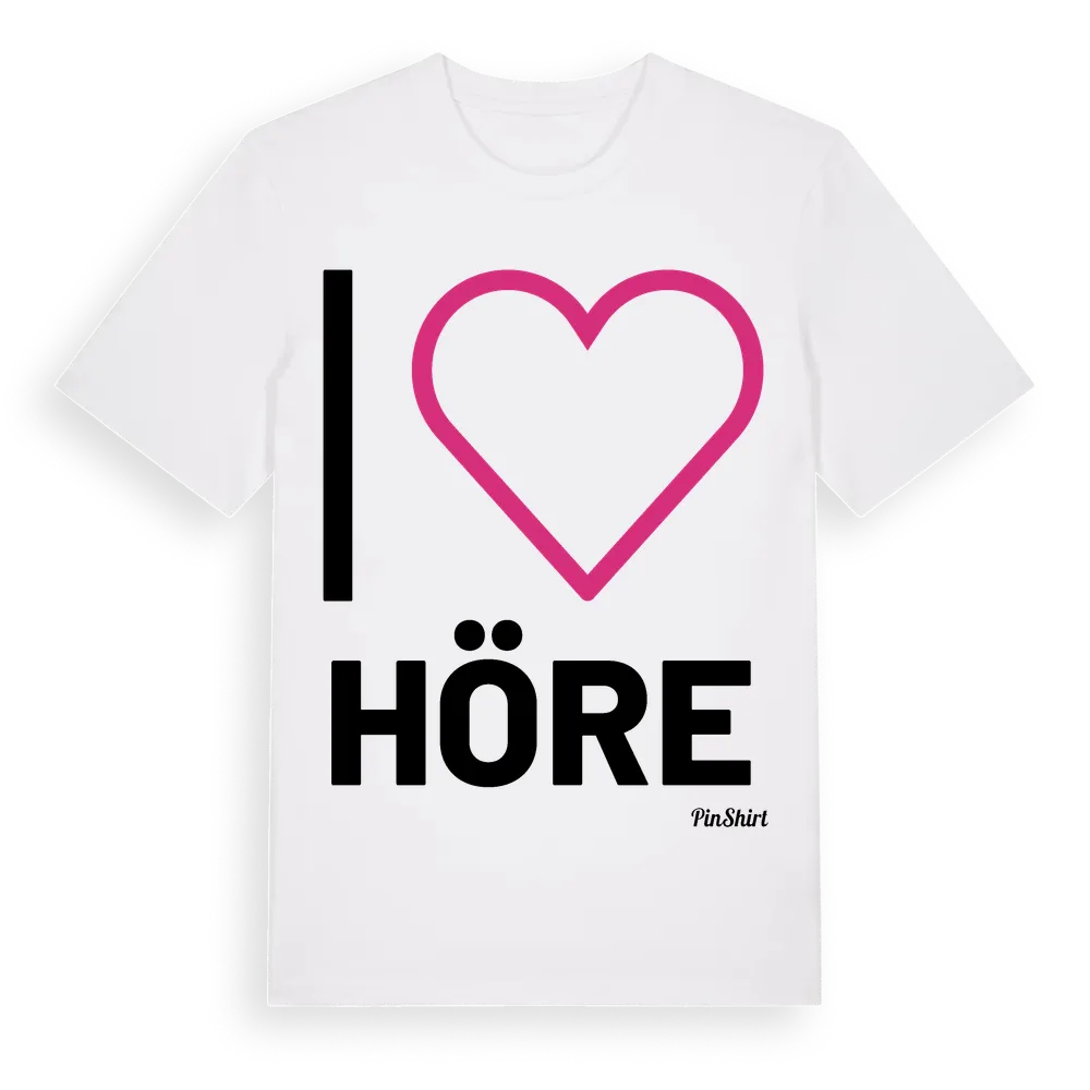 Det klassiska "I ❤ Höre"-motivet i stort format som täcker hela bröstet. För dig som vill visa kärleken till Höre på riktigt. Premium bomull, unisex – från byn Höre i Örebro län.