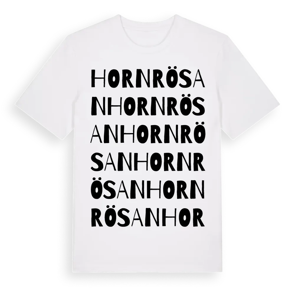 Hornrösan ordlek t-shirt är inspirerad av Hornrösan i Örebro län, Sverige. Tröjan är designad för dig som har en speciell koppling till platsen – oavsett om du bor här, har rötterna här eller bara älskar Hornrösan.