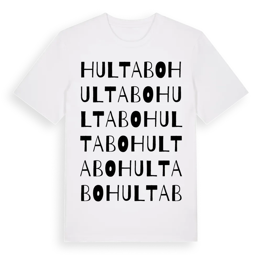 Hultabo ordlek t-shirt är inspirerad av Hultabo i Örebro län, Sverige. Tröjan är designad för dig som har en speciell koppling till platsen – oavsett om du bor här, har rötterna här eller bara älskar Hultabo.