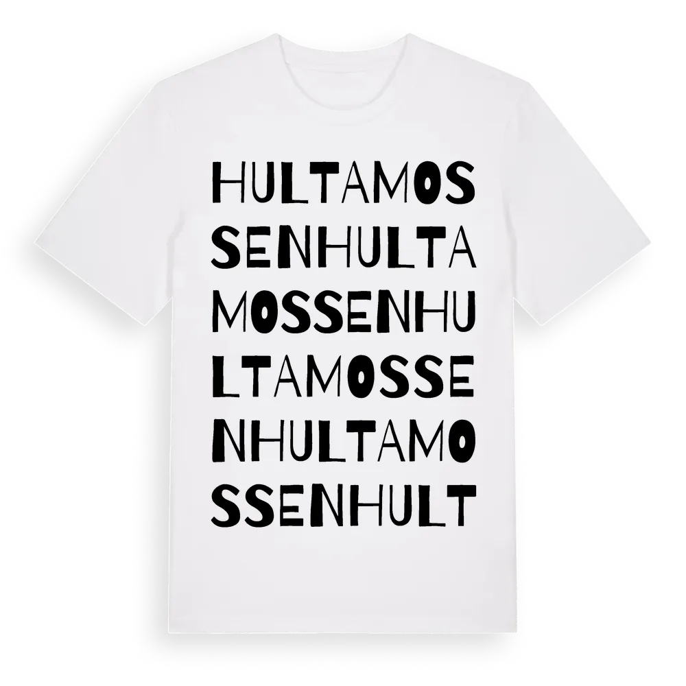 Hultamossen ordlek t-shirt är inspirerad av Hultamossen i Örebro län, Sverige. Tröjan är designad för dig som har en speciell koppling till platsen – oavsett om du bor här, har rötterna här eller bara älskar Hultamossen.