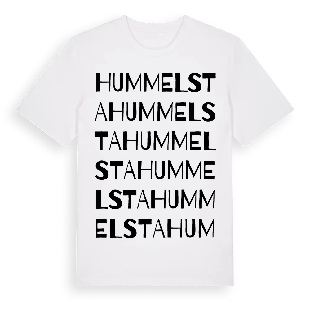 Hummelsta ordlek t-shirt är inspirerad av stadsdelen Hummelsta i Örebro län, Sverige. Tröjan är designad för dig som har en speciell koppling till platsen – oavsett om du bor här, har rötterna här eller bara älskar Hummelsta.