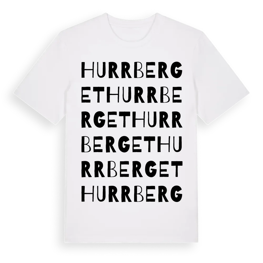 En ordlek byggd på Hurrbergets namn. Subtilt och klurig – ett motiv som bara de som verkligen känner platsen fullt ut förstår. Premium bomull, unisex – från Hurrberget i Örebro län.