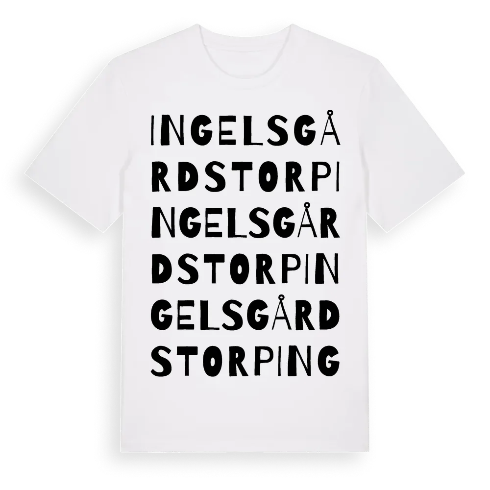 Ingelsgårdstorp ordlek t-shirt är inspirerad av Ingelsgårdstorp i Örebro län, Sverige. Tröjan är designad för dig som har en speciell koppling till platsen – oavsett om du bor här, har rötterna här eller bara älskar Ingelsgårdstorp.