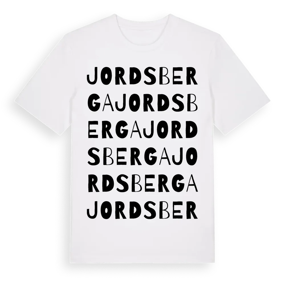 Jordsberga ordlek t-shirt är inspirerad av Jordsberga i Örebro län, Sverige. Tröjan är designad för dig som har en speciell koppling till platsen – oavsett om du bor här, har rötterna här eller bara älskar Jordsberga.