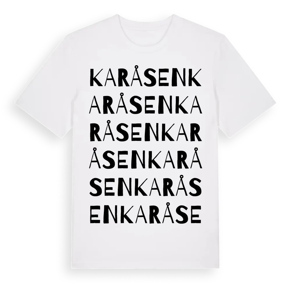 Karåsen ordlek t-shirt är inspirerad av Karåsen i Örebro län, Sverige. Tröjan är designad för dig som har en speciell koppling till platsen – oavsett om du bor här, har rötterna här eller bara älskar Karåsen.