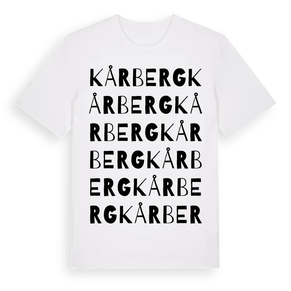 Kårberg ordlek t-shirt är inspirerad av byn Kårberg i Örebro län, Sverige. Tröjan är designad för dig som har en speciell koppling till platsen – oavsett om du bor här, har rötterna här eller bara älskar Kårberg.
