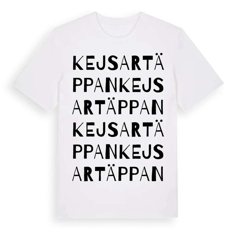 Kejsartäppan ordlek t-shirt är inspirerad av Kejsartäppan i Örebro län, Sverige. Tröjan är designad för dig som har en speciell koppling till platsen – oavsett om du bor här, har rötterna här eller bara älskar Kejsartäppan.