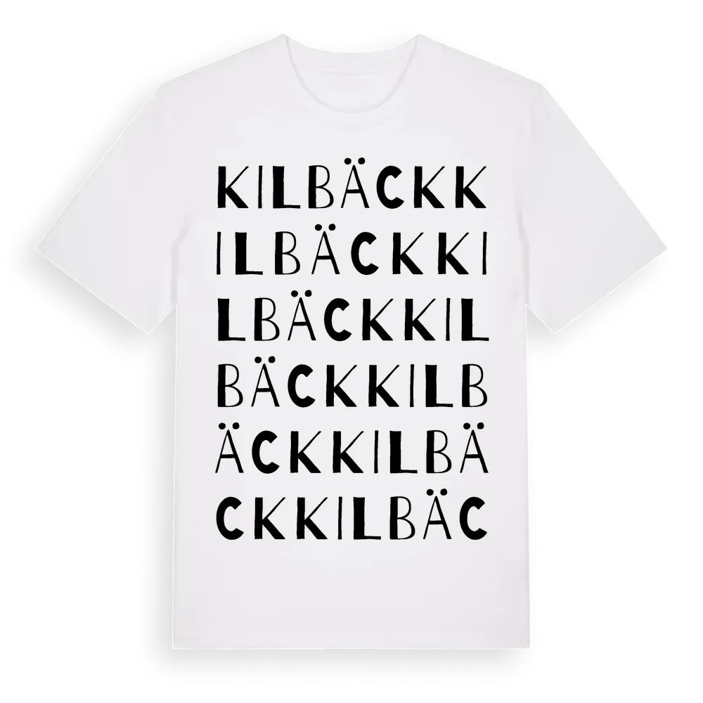 Kilbäck ordlek t-shirt är inspirerad av Kilbäck i Örebro län, Sverige. Tröjan är designad för dig som har en speciell koppling till platsen – oavsett om du bor här, har rötterna här eller bara älskar Kilbäck.