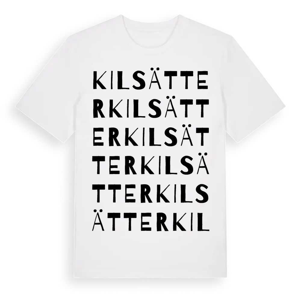 Kilsätter ordlek t-shirt är inspirerad av Kilsätter i Örebro län, Sverige. Tröjan är designad för dig som har en speciell koppling till platsen – oavsett om du bor här, har rötterna här eller bara älskar Kilsätter.