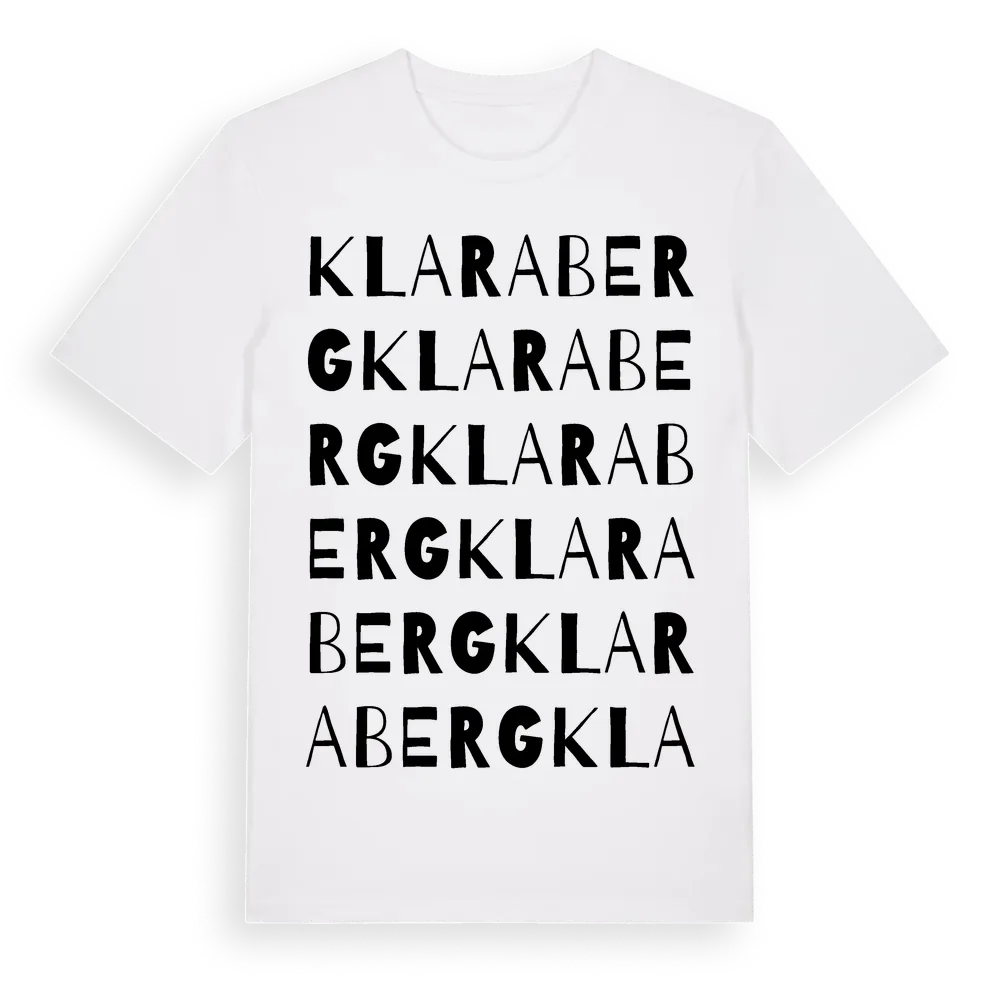 Klaraberg ordlek t-shirt är inspirerad av Klaraberg i Örebro län, Sverige. Tröjan är designad för dig som har en speciell koppling till platsen – oavsett om du bor här, har rötterna här eller bara älskar Klaraberg.