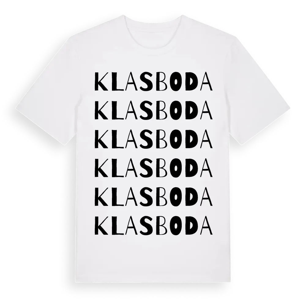 Klasboda ordlek t-shirt är inspirerad av Klasboda i Örebro län, Sverige. Tröjan är designad för dig som har en speciell koppling till platsen – oavsett om du bor här, har rötterna här eller bara älskar Klasboda.