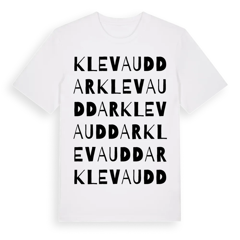 Kleva Uddar ordlek t-shirt är inspirerad av Kleva Uddar i Örebro län, Sverige. Tröjan är designad för dig som har en speciell koppling till platsen – oavsett om du bor här, har rötterna här eller bara älskar Kleva Uddar.