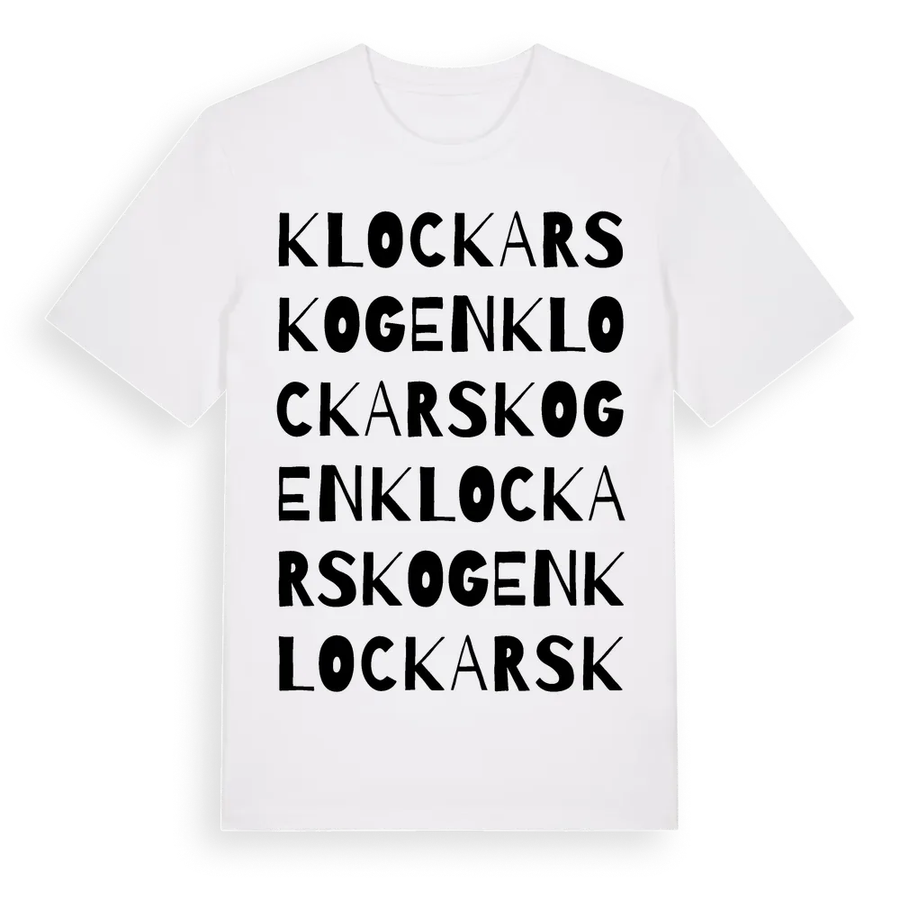 Klockarskogen ordlek t-shirt är inspirerad av stadsdelen Klockarskogen i Örebro län, Sverige. Tröjan är designad för dig som har en speciell koppling till platsen – oavsett om du bor här, har rötterna här eller bara älskar Klockarskogen.
