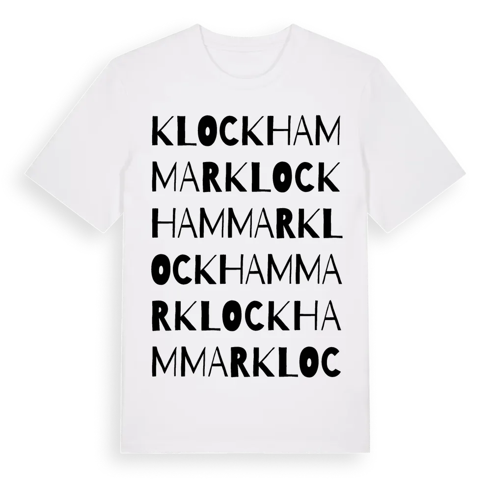 Klockhammar ordlek t-shirt är inspirerad av byn Klockhammar i Örebro län, Sverige. Tröjan är designad för dig som har en speciell koppling till platsen – oavsett om du bor här, har rötterna här eller bara älskar Klockhammar.