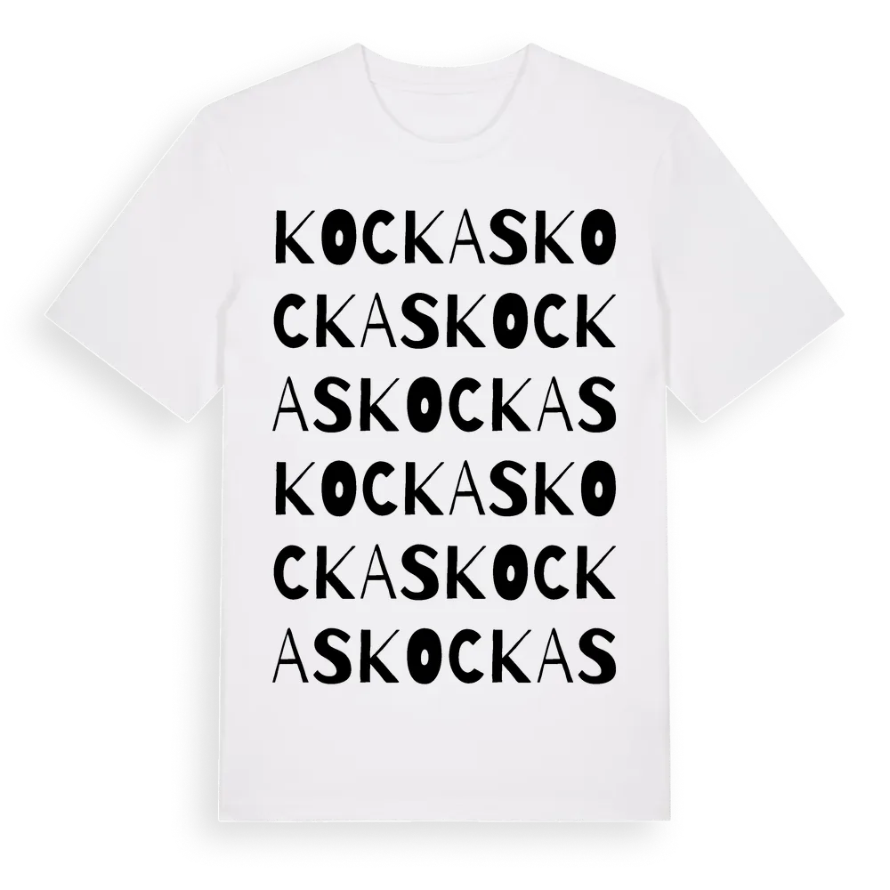 Kockas ordlek t-shirt är inspirerad av Kockas i Örebro län, Sverige. Tröjan är designad för dig som har en speciell koppling till platsen – oavsett om du bor här, har rötterna här eller bara älskar Kockas.