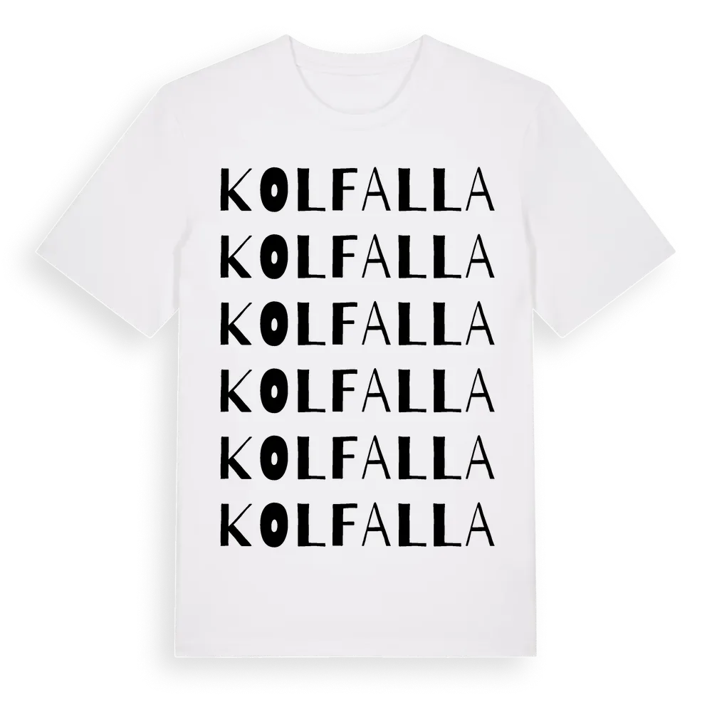 Kolfalla ordlek t-shirt är inspirerad av Kolfalla i Örebro län, Sverige. Tröjan är designad för dig som har en speciell koppling till platsen – oavsett om du bor här, har rötterna här eller bara älskar Kolfalla.