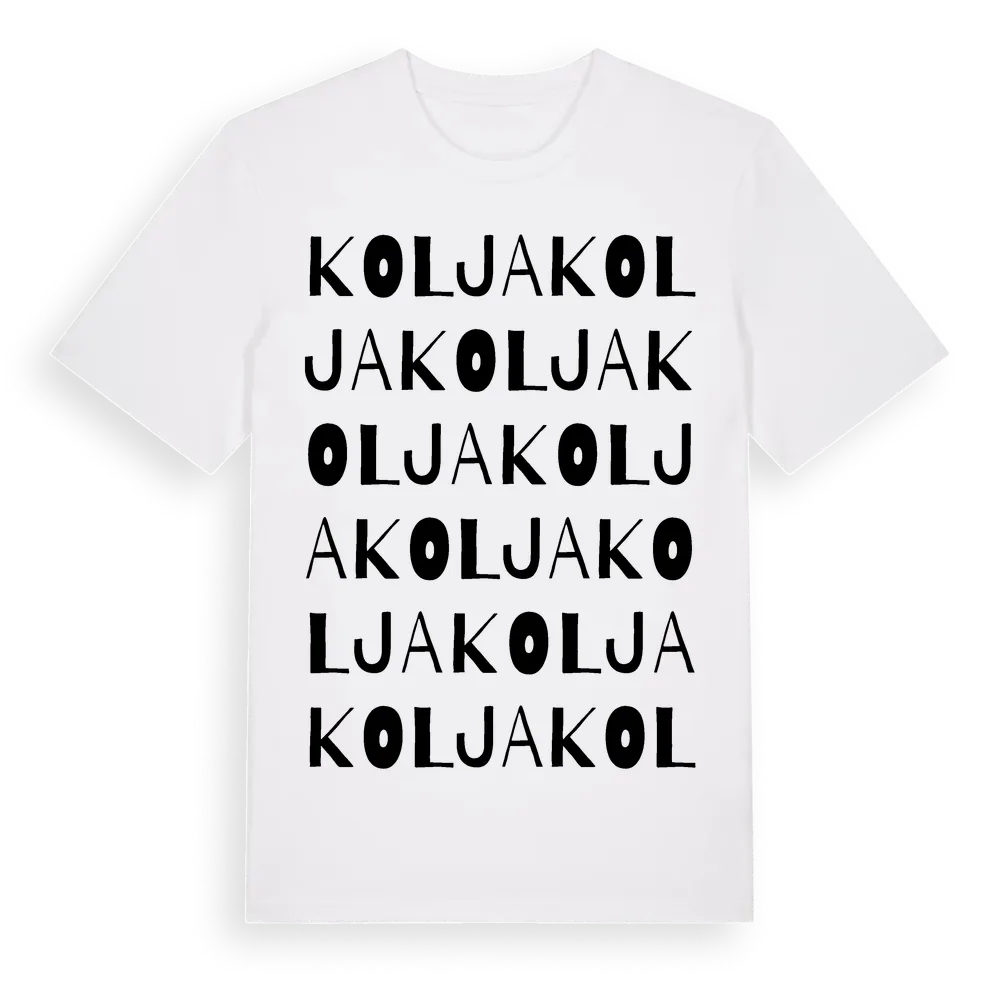 Kolja ordlek t-shirt är inspirerad av byn Kolja i Örebro län, Sverige. Tröjan är designad för dig som har en speciell koppling till platsen – oavsett om du bor här, har rötterna här eller bara älskar Kolja.