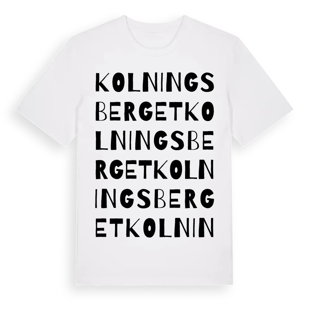 Kolningsberget ordlek t-shirt är inspirerad av Kolningsberget i Örebro län, Sverige. Tröjan är designad för dig som har en speciell koppling till platsen – oavsett om du bor här, har rötterna här eller bara älskar Kolningsberget.