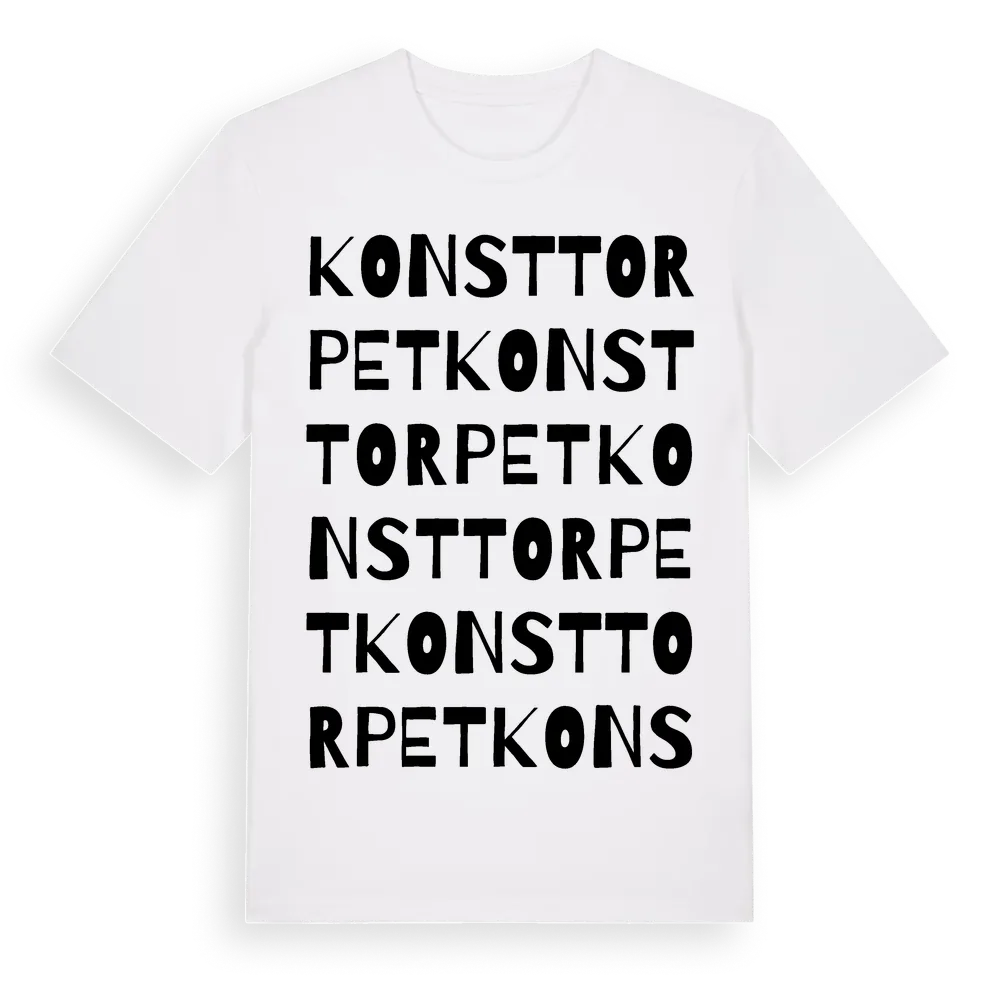 Konsttorpet ordlek t-shirt är inspirerad av byn Konsttorpet i Örebro län, Sverige. Tröjan är designad för dig som har en speciell koppling till platsen – oavsett om du bor här, har rötterna här eller bara älskar Konsttorpet.