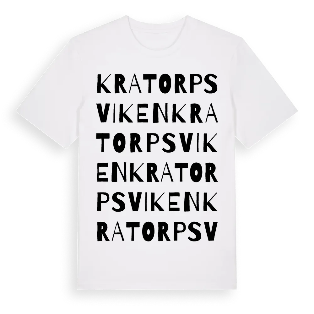 Kratorpsviken ordlek t-shirt är inspirerad av Kratorpsviken i Örebro län, Sverige. Tröjan är designad för dig som har en speciell koppling till platsen – oavsett om du bor här, har rötterna här eller bara älskar Kratorpsviken.