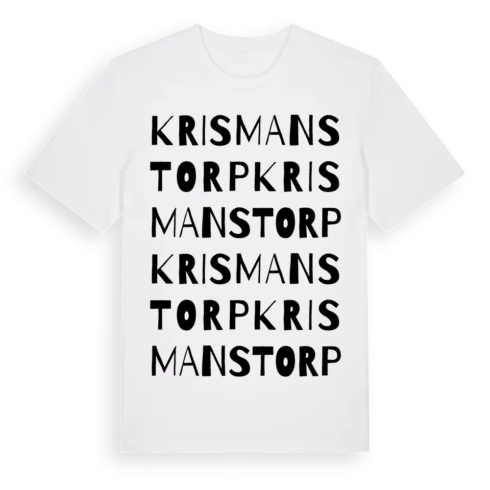 Krismanstorp ordlek t-shirt är inspirerad av Krismanstorp i Örebro län, Sverige. Tröjan är designad för dig som har en speciell koppling till platsen – oavsett om du bor här, har rötterna här eller bara älskar Krismanstorp.
