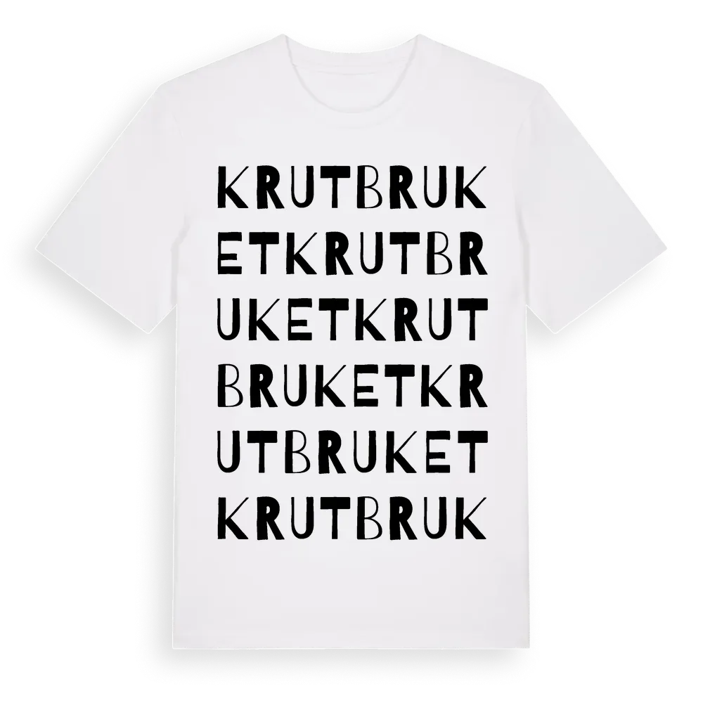 Krutbruket ordlek t-shirt är inspirerad av byn Krutbruket i Örebro län, Sverige. Tröjan är designad för dig som har en speciell koppling till platsen – oavsett om du bor här, har rötterna här eller bara älskar Krutbruket.