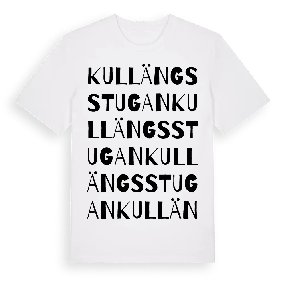 Kullängsstugan ordlek t-shirt är inspirerad av Kullängsstugan i Örebro län, Sverige. Tröjan är designad för dig som har en speciell koppling till platsen – oavsett om du bor här, har rötterna här eller bara älskar Kullängsstugan.