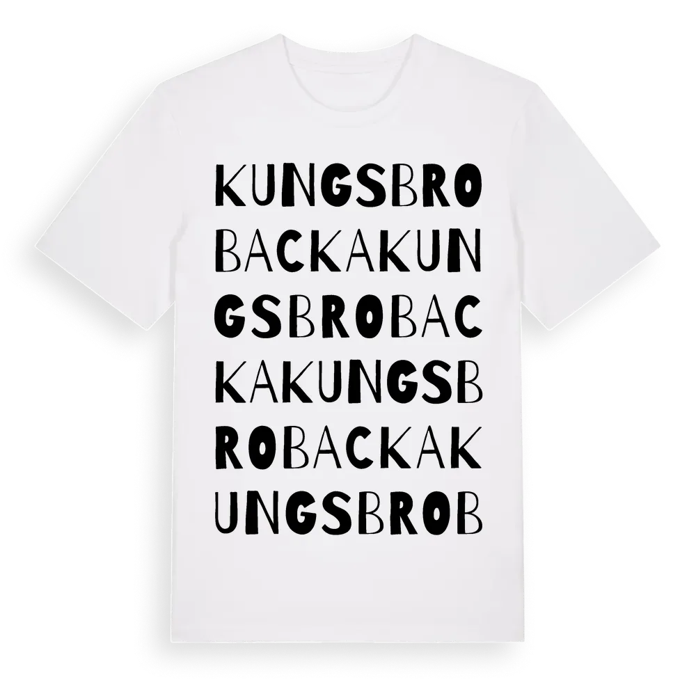 Kungsbrobacka ordlek t-shirt är inspirerad av Kungsbrobacka i Örebro län, Sverige. Tröjan är designad för dig som har en speciell koppling till platsen – oavsett om du bor här, har rötterna här eller bara älskar Kungsbrobacka.