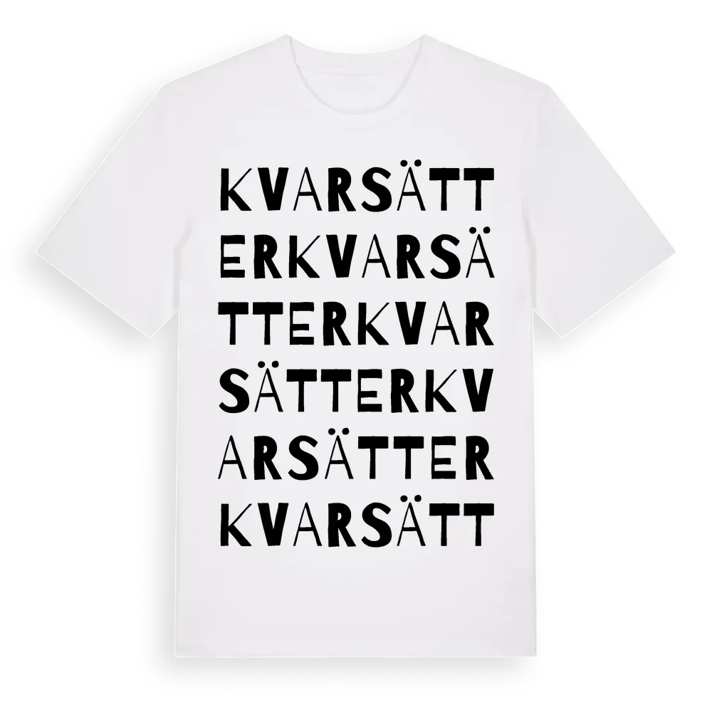 Kvarsätter ordlek t-shirt är inspirerad av Kvarsätter i Örebro län, Sverige. Tröjan är designad för dig som har en speciell koppling till platsen – oavsett om du bor här, har rötterna här eller bara älskar Kvarsätter.