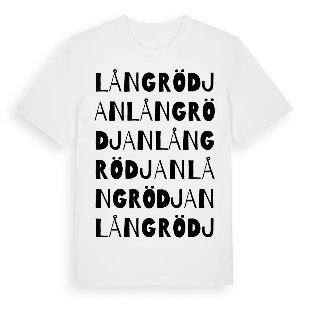 Långrödjan ordlek t-shirt är inspirerad av Långrödjan i Örebro län, Sverige. Tröjan är designad för dig som har en speciell koppling till platsen – oavsett om du bor här, har rötterna här eller bara älskar Långrödjan.