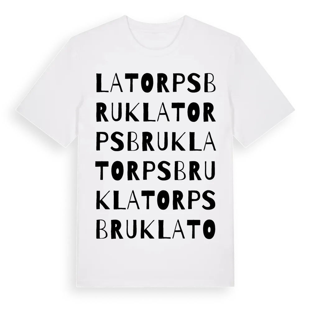 Latorpsbruk ordlek t-shirt är inspirerad av byn Latorpsbruk i Örebro län, Sverige. Tröjan är designad för dig som har en speciell koppling till platsen – oavsett om du bor här, har rötterna här eller bara älskar Latorpsbruk.