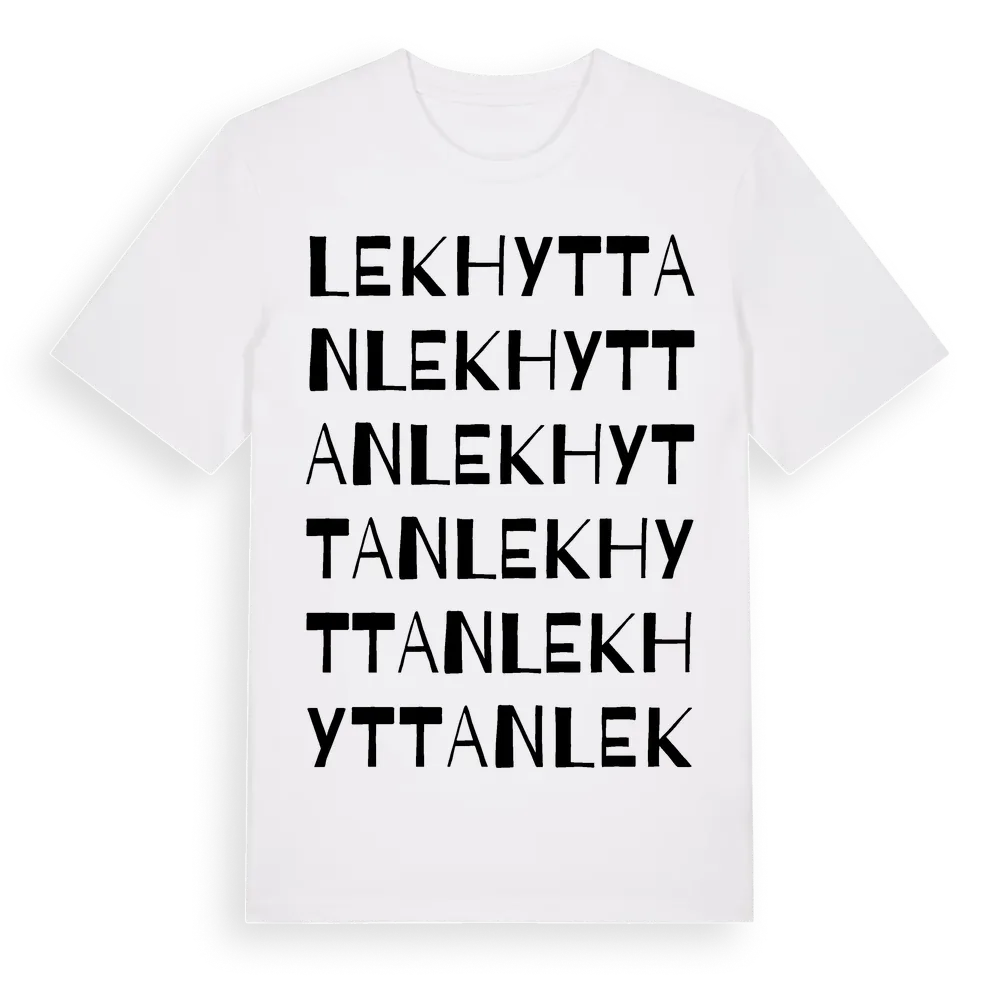 Lekhyttan ordlek t-shirt är inspirerad av byn Lekhyttan i Örebro län, Sverige. Tröjan är designad för dig som har en speciell koppling till platsen – oavsett om du bor här, har rötterna här eller bara älskar Lekhyttan.
