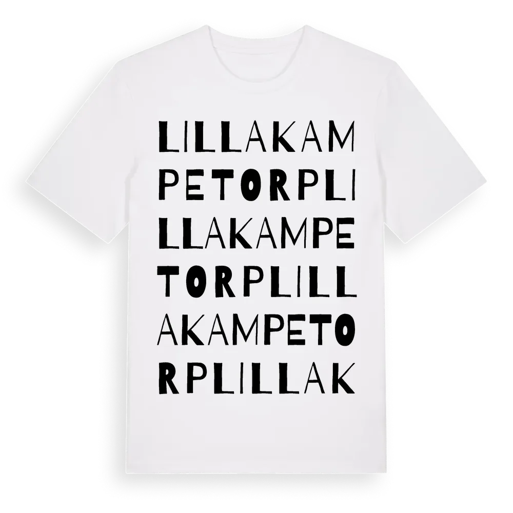 Lilla Kampetorp ordlek t-shirt är inspirerad av Lilla Kampetorp i Örebro län, Sverige. Tröjan är designad för dig som har en speciell koppling till platsen – oavsett om du bor här, har rötterna här eller bara älskar Lilla Kampetorp.