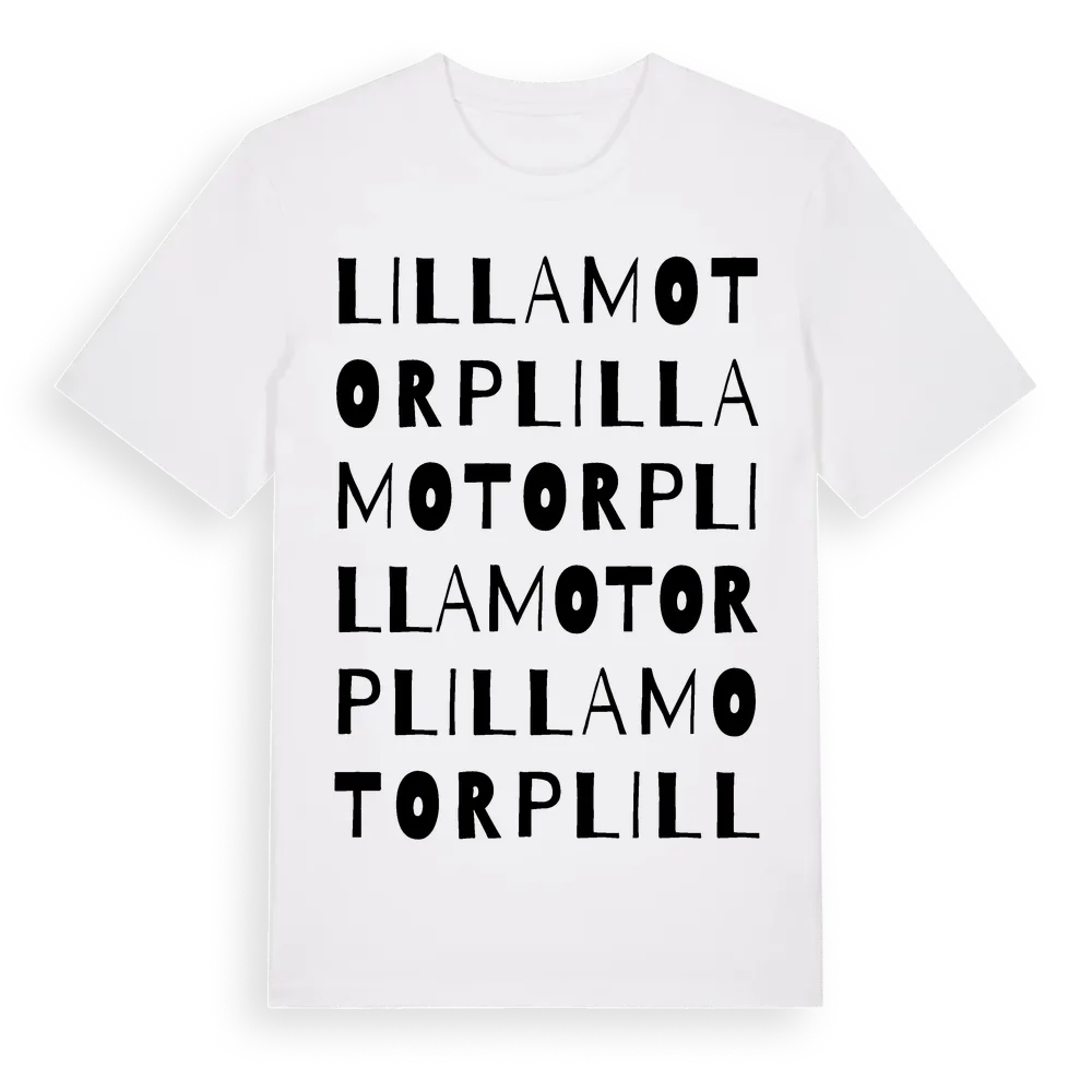 Lilla Motorp ordlek t-shirt är inspirerad av Lilla Motorp i Örebro län, Sverige. Tröjan är designad för dig som har en speciell koppling till platsen – oavsett om du bor här, har rötterna här eller bara älskar Lilla Motorp.
