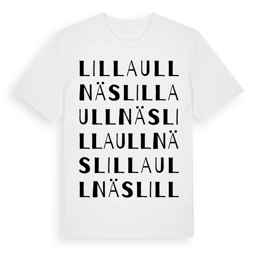 Lilla Ullnäs ordlek t-shirt är inspirerad av Lilla Ullnäs i Örebro län, Sverige. Tröjan är designad för dig som har en speciell koppling till platsen – oavsett om du bor här, har rötterna här eller bara älskar Lilla Ullnäs.