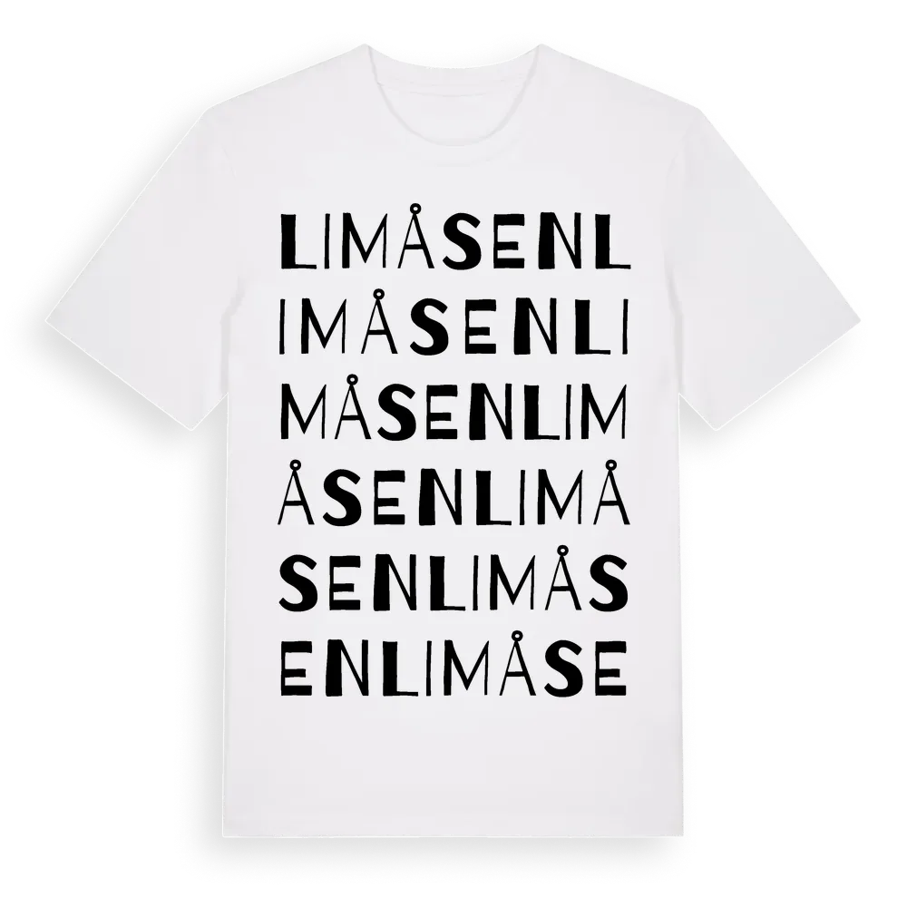 Limåsen ordlek t-shirt är inspirerad av Limåsen i Örebro län, Sverige. Tröjan är designad för dig som har en speciell koppling till platsen – oavsett om du bor här, har rötterna här eller bara älskar Limåsen.