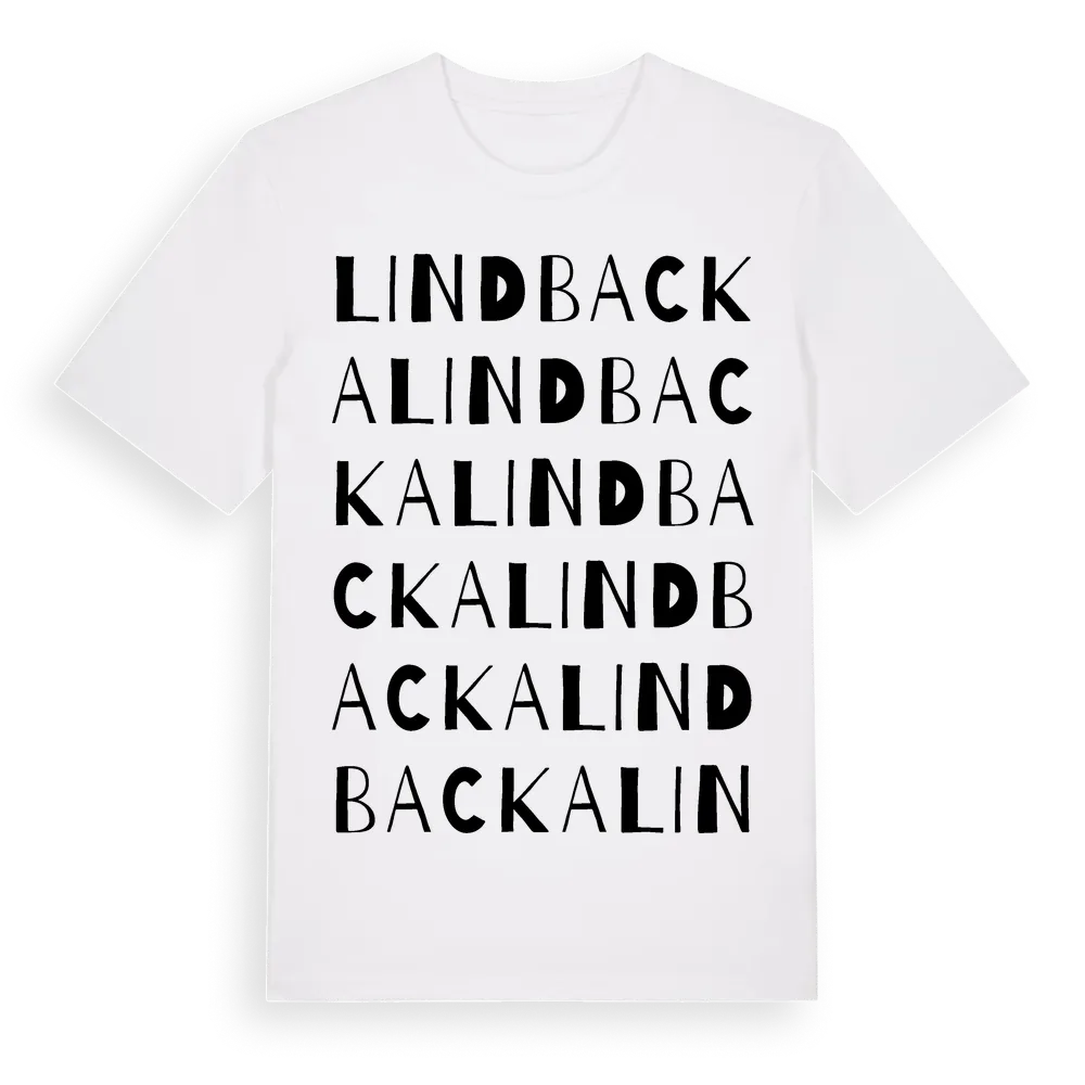 Lindbacka ordlek t-shirt är inspirerad av Lindbacka i Örebro län, Sverige. Tröjan är designad för dig som har en speciell koppling till platsen – oavsett om du bor här, har rötterna här eller bara älskar Lindbacka.