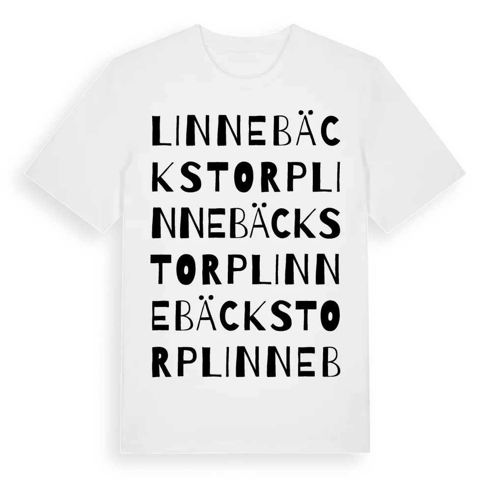 Linnebäckstorp ordlek t-shirt är inspirerad av Linnebäckstorp i Örebro län, Sverige. Tröjan är designad för dig som har en speciell koppling till platsen – oavsett om du bor här, har rötterna här eller bara älskar Linnebäckstorp.