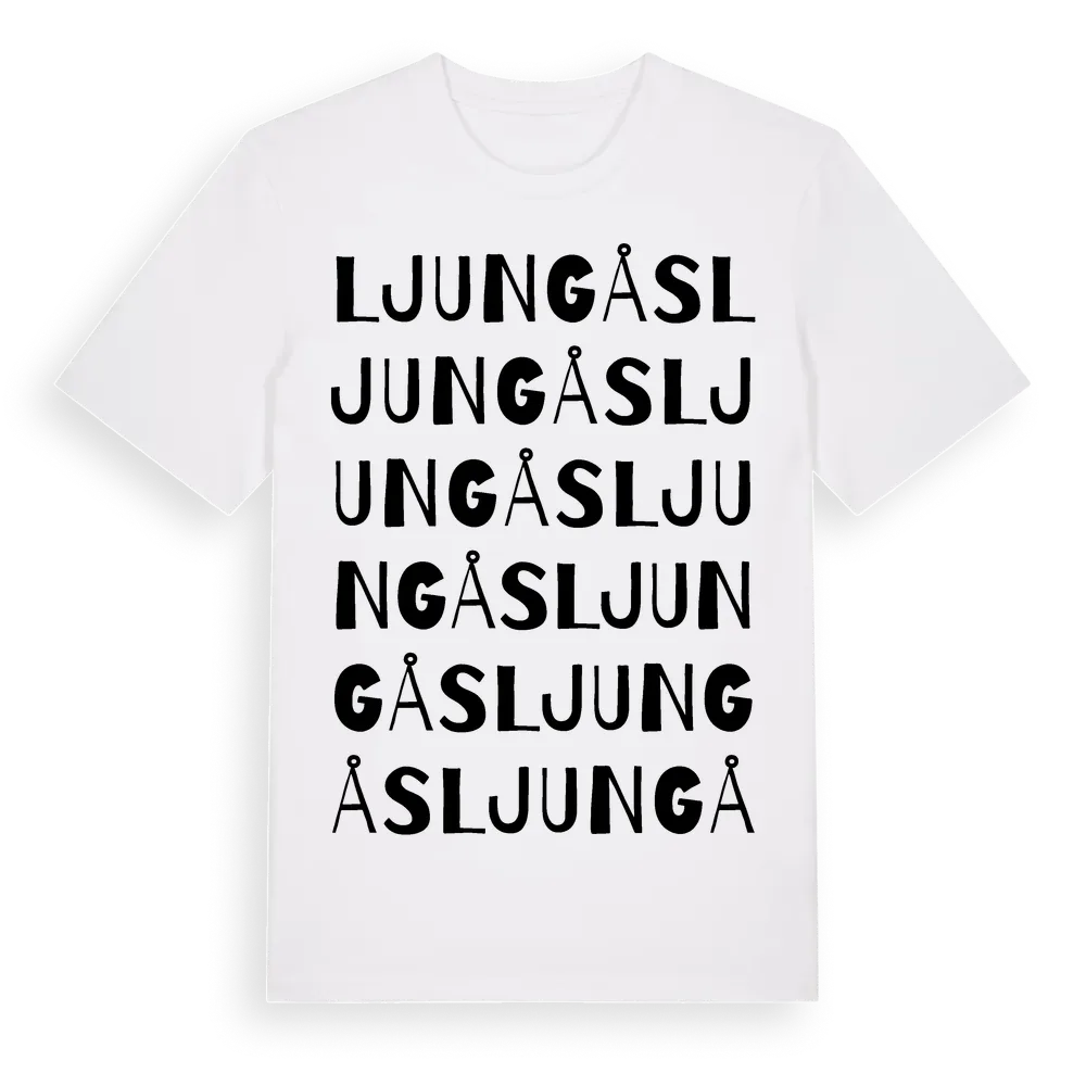Ljungås ordlek t-shirt är inspirerad av Ljungås i Örebro län, Sverige. Tröjan är designad för dig som har en speciell koppling till platsen – oavsett om du bor här, har rötterna här eller bara älskar Ljungås.