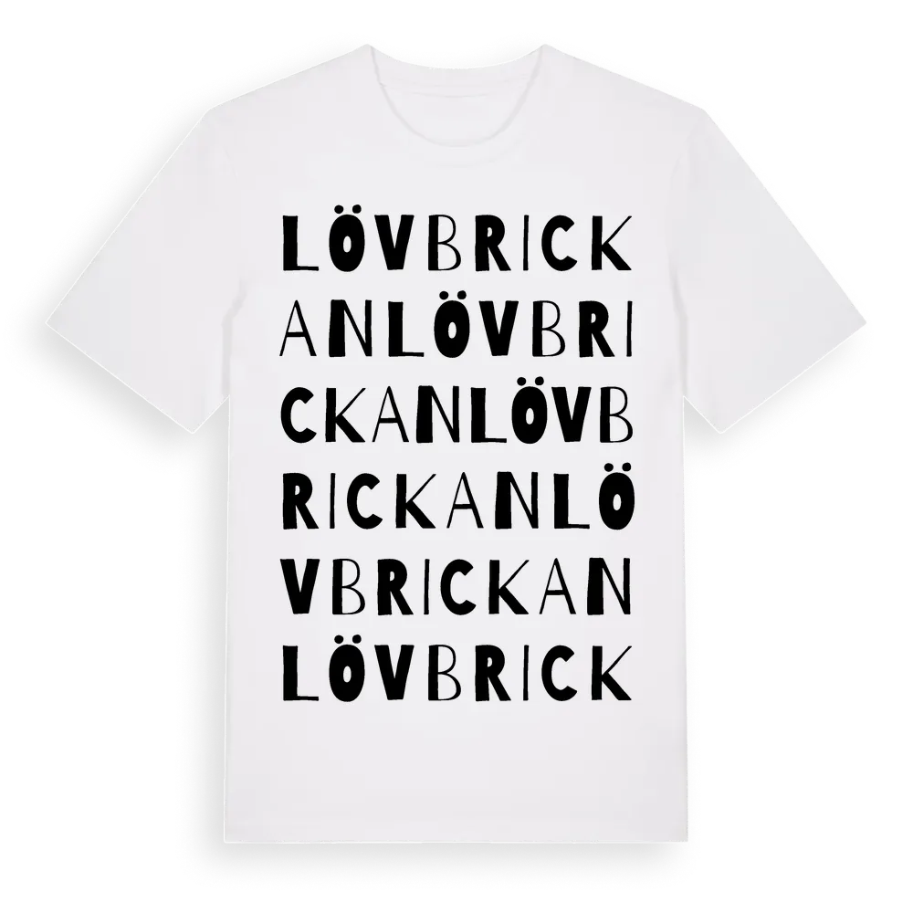 Lövbrickan ordlek t-shirt är inspirerad av Lövbrickan i Örebro län, Sverige. Tröjan är designad för dig som har en speciell koppling till platsen – oavsett om du bor här, har rötterna här eller bara älskar Lövbrickan.