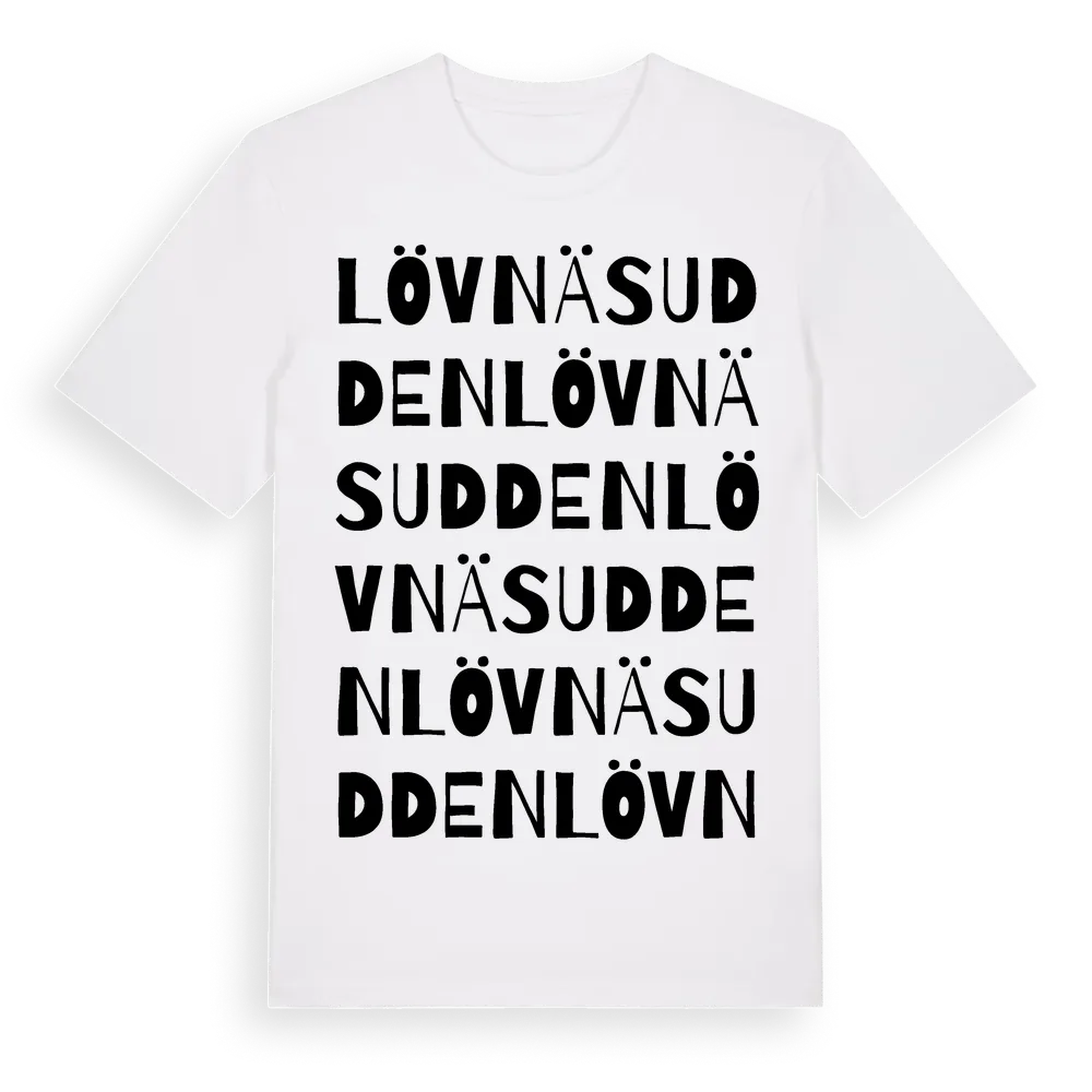 Lövnäsudden ordlek t-shirt är inspirerad av byn Lövnäsudden i Örebro län, Sverige. Tröjan är designad för dig som har en speciell koppling till platsen – oavsett om du bor här, har rötterna här eller bara älskar Lövnäsudden.