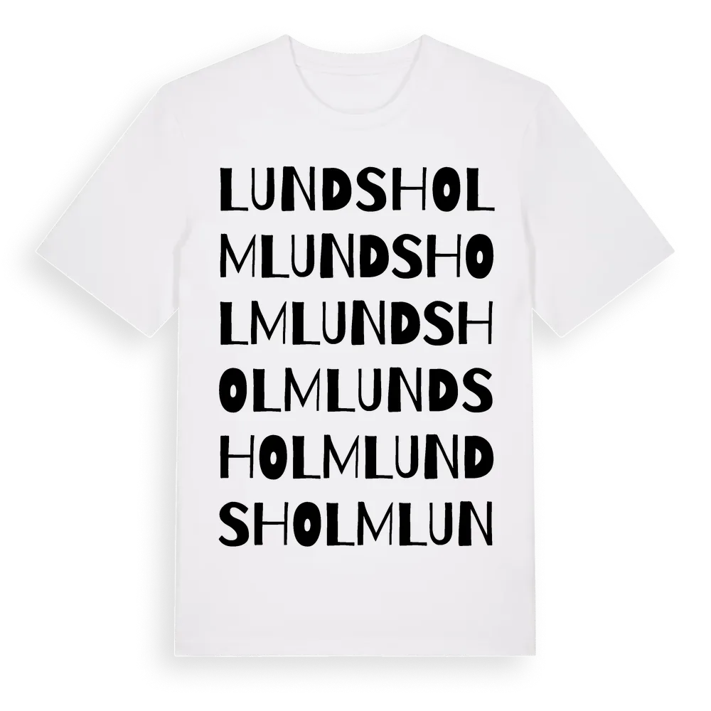 Lundsholm ordlek t-shirt är inspirerad av Lundsholm i Örebro län, Sverige. Tröjan är designad för dig som har en speciell koppling till platsen – oavsett om du bor här, har rötterna här eller bara älskar Lundsholm.