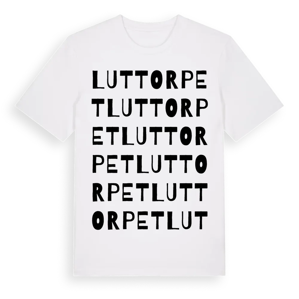 Luttorpet ordlek t-shirt är inspirerad av Luttorpet i Örebro län, Sverige. Tröjan är designad för dig som har en speciell koppling till platsen – oavsett om du bor här, har rötterna här eller bara älskar Luttorpet.